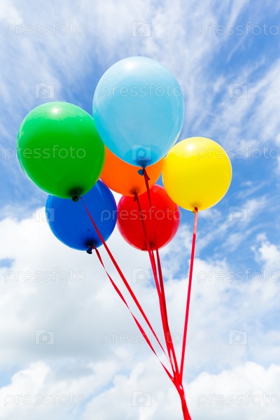 Букет из разноцветных шаров в голубое небо
