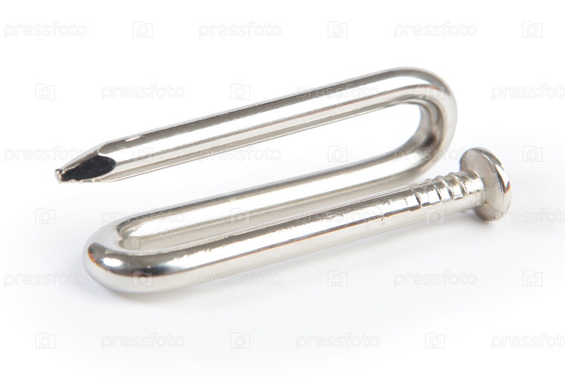 Гнутый гвоздь на белом фоне