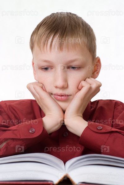 Красивый мальчик читает книгу