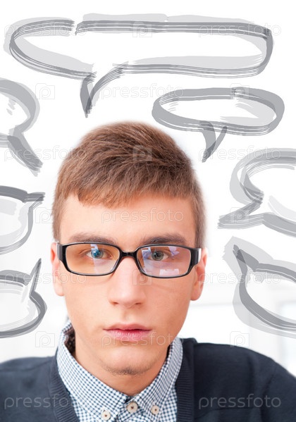 Портрет задумчивого молодого человека в очках