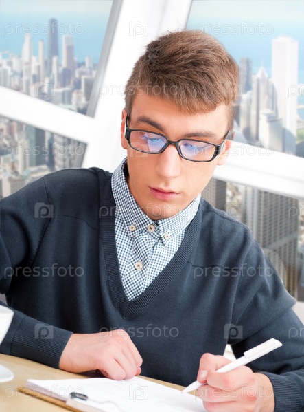 Студент занимается за столом