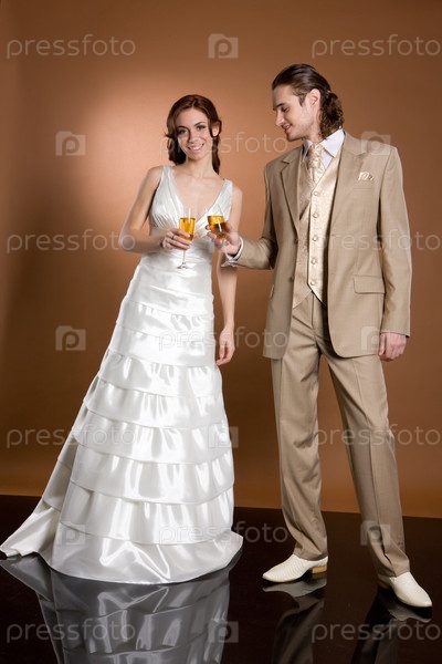 Молодая женщина и мужчина в свадебной одежде