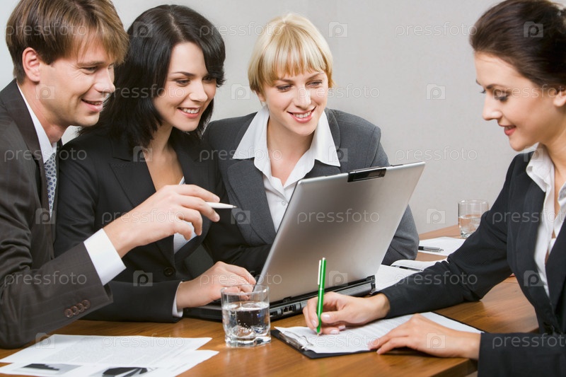 Современные бизнесмены, работающие вместе в офисе