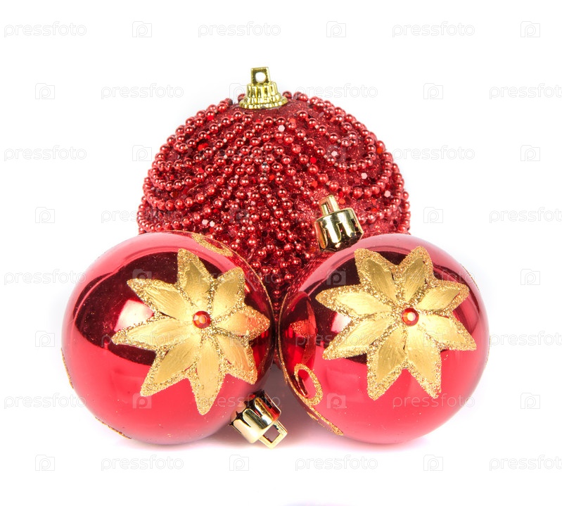 Три рождественские игрушки на белом фоне