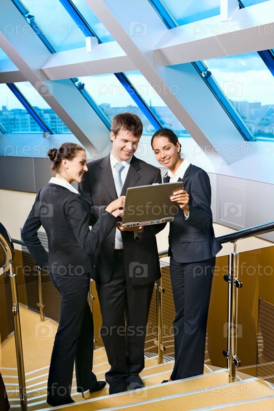 Деловые люди встречаются на лестнице