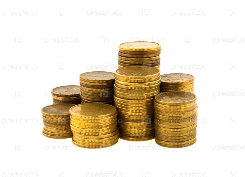 Колонки монет изолированы на белом фоне