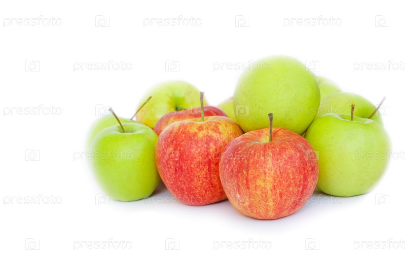 Красные и зеленые яблоки на белом фоне