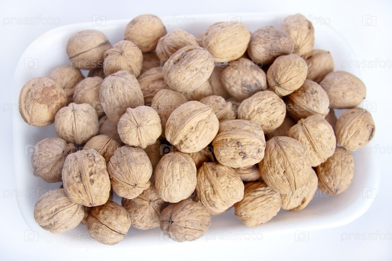 Грецкие орехи на белом блюде