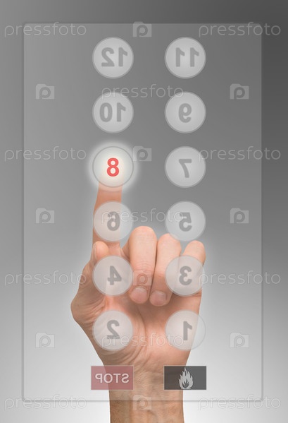 Палец нажимает на кнопку лифта