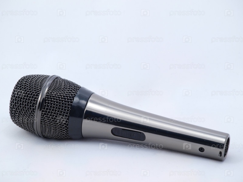 Микрофон крупным планом на белом фоне