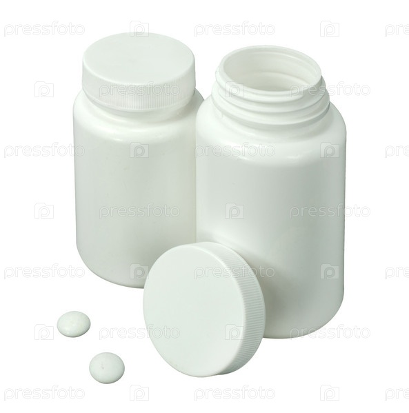 Две белые таблетки с двумя белыми банку