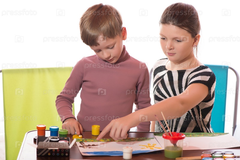 Мальчик и девочка рисуют