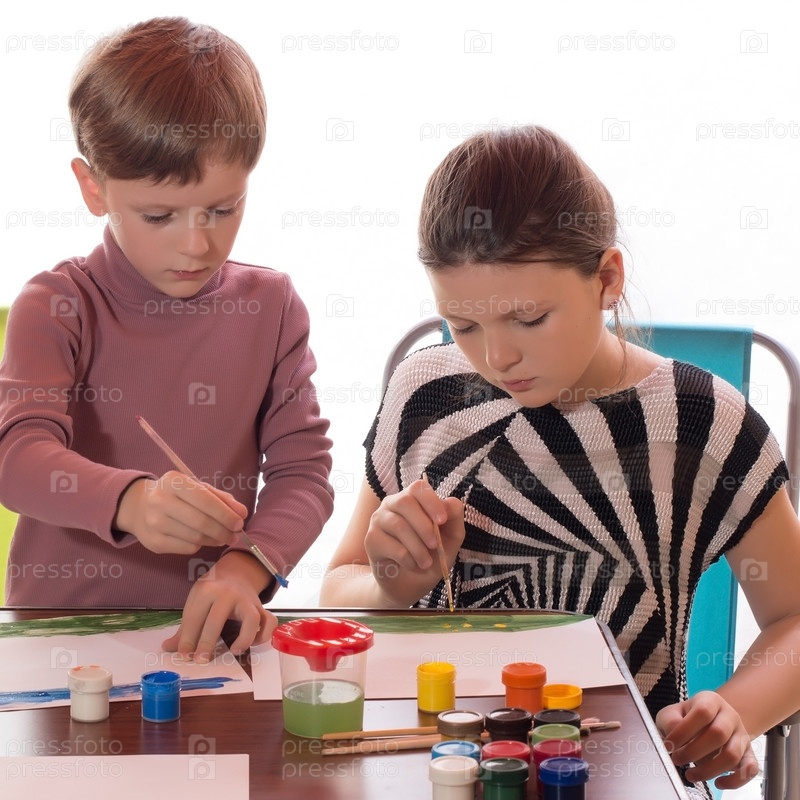 Мальчик и девочка рисуют