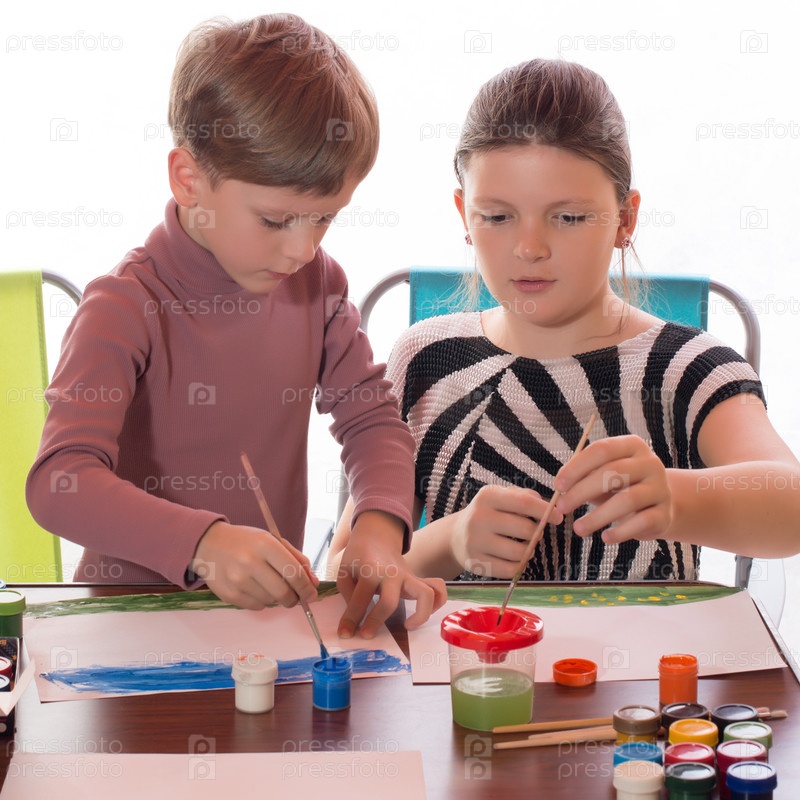 Мальчик и девочка рисуют
