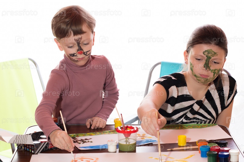 Мальчик и девочка рисуют