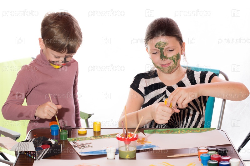 Мальчик и девочка рисуют