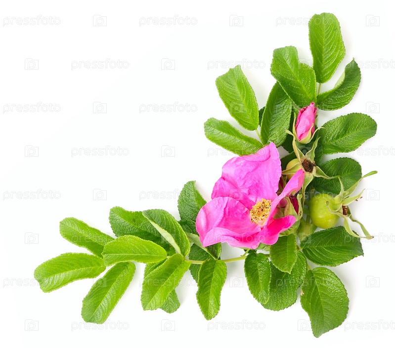 Ветка шиповника на белом фоне