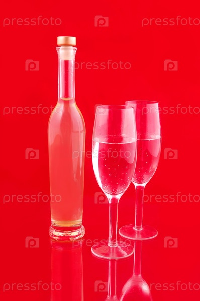 Два бокала шампанского на красном фоне