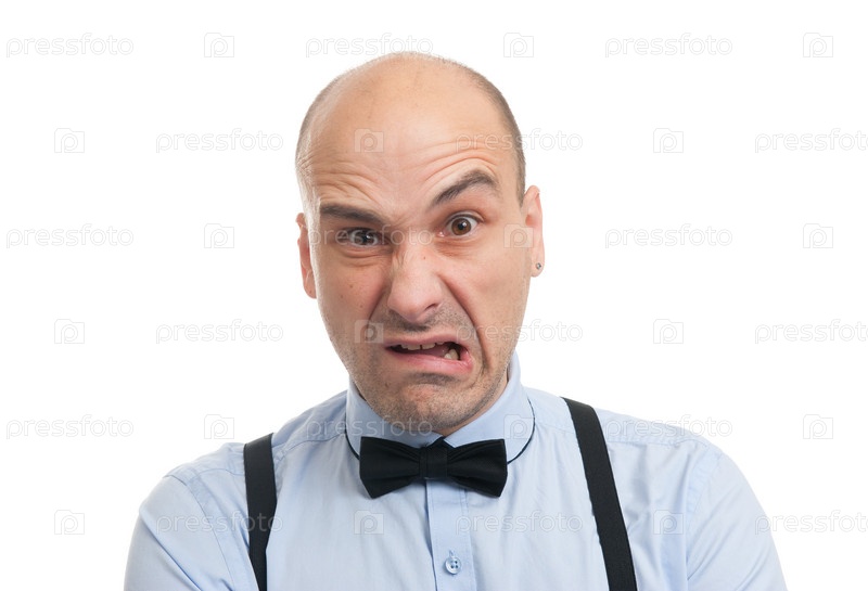 Шокированный лысый мужчина