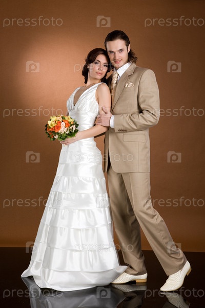 Молодая женщина и мужчина в свадебной одежде
