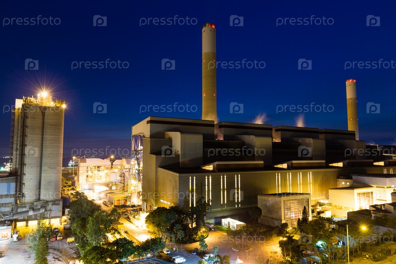 Угольные электростанции и цементный завод в ночное время