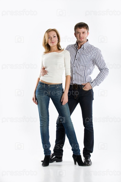 Молодая женщина и мужчина в модной одежде