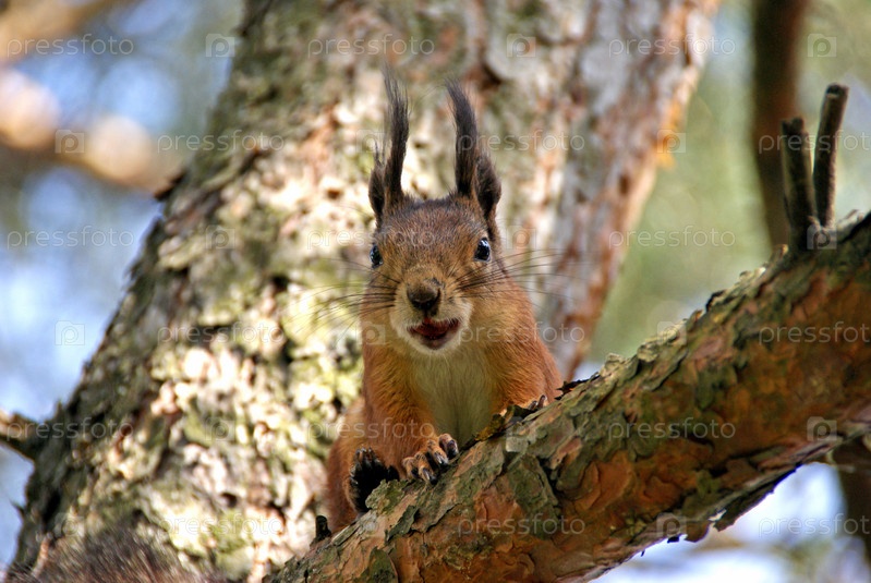 Белка сидит на дереве