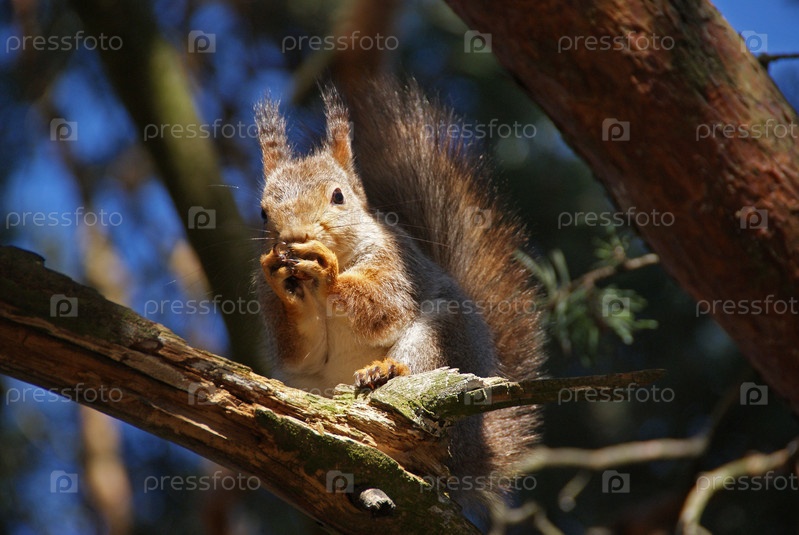 Белка сидит на дереве