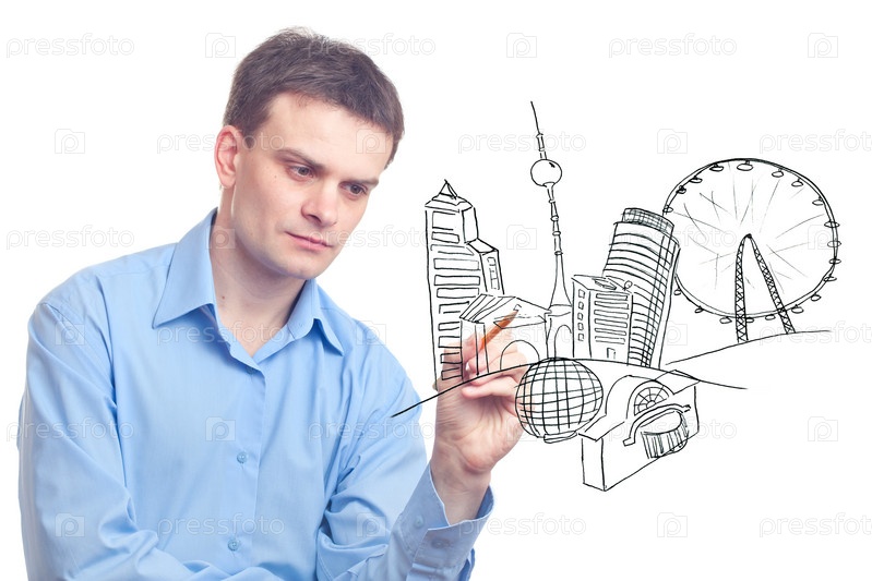 Бизнесмен рисует город