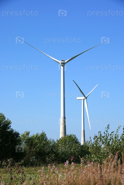 Ветровые турбины на фоне голубого неба
