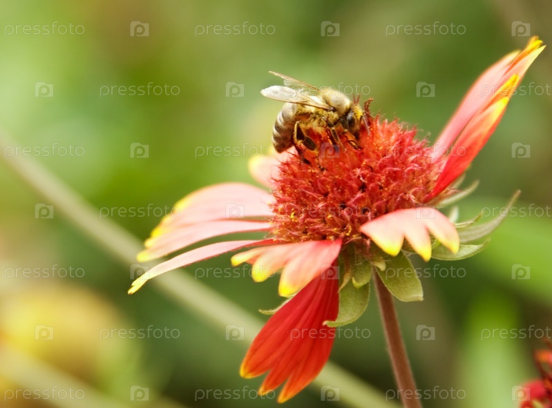 Пчела сидит на цветке