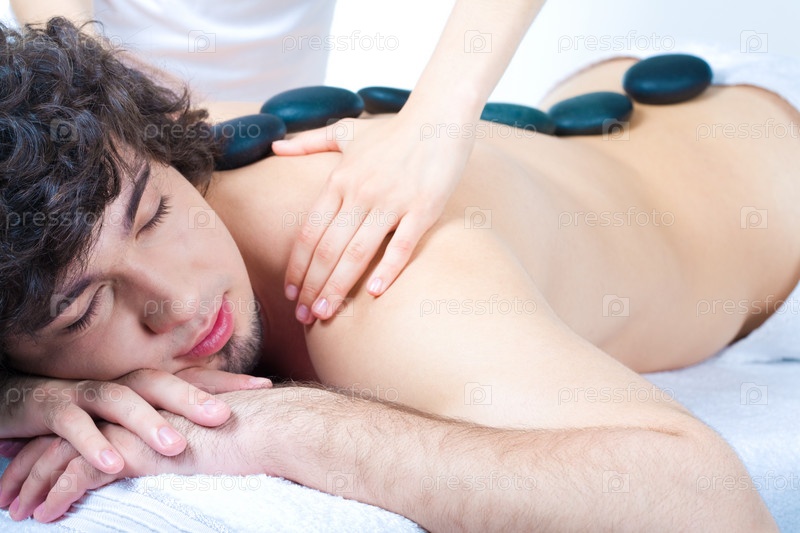 Изображение мужчины с курортным камнем на спине в салоне