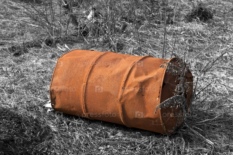 Старый ржавый бак на черно белом фоне