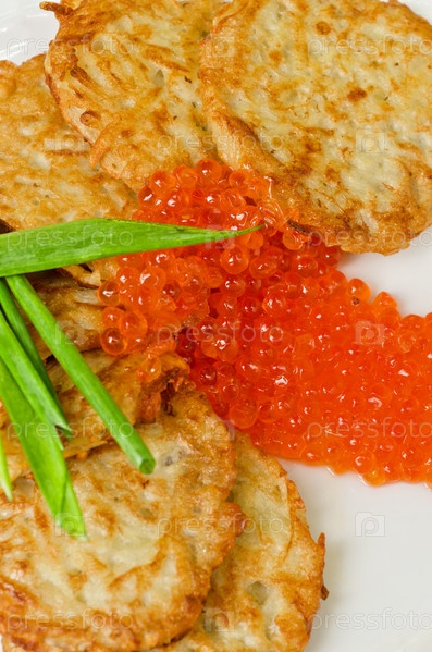Блинчики с красной икрой и зеленый лук
