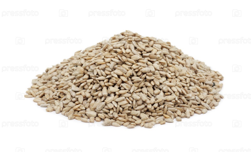 Куча очищенных семян подсолнечника, изолированных на белом фоне