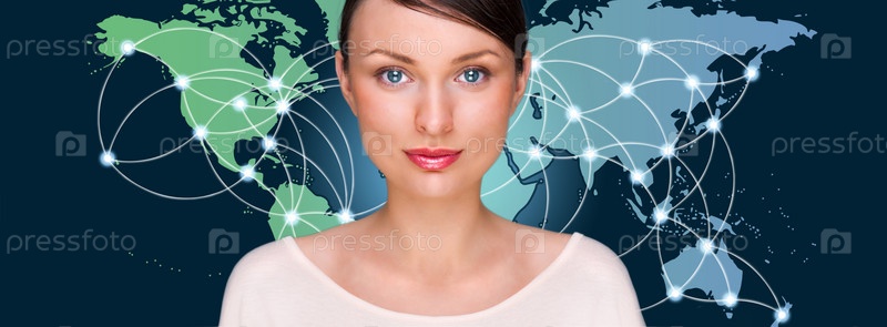 Привлекательная брюнетка на фоне футуристического интерфейса
