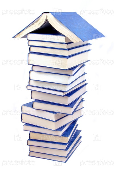 Дом из книг на белом фоне