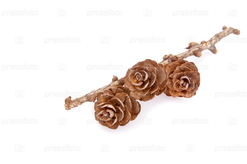 Три сосновые шишки, изолированные на белом фоне