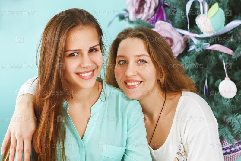 Мать и дочь возле рождественской елки