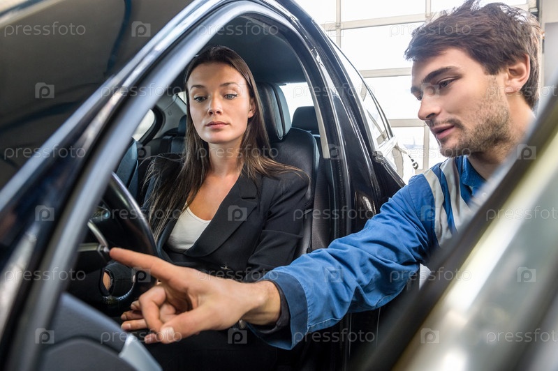 Механик объясняет девушке, как работает поворотник