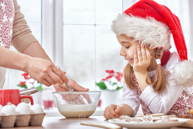 Мать и дочь готовят Рождественское печенье