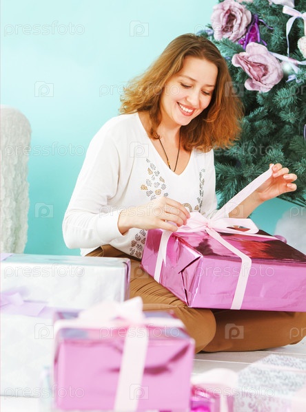 Счастливая молодая женщина с подарком