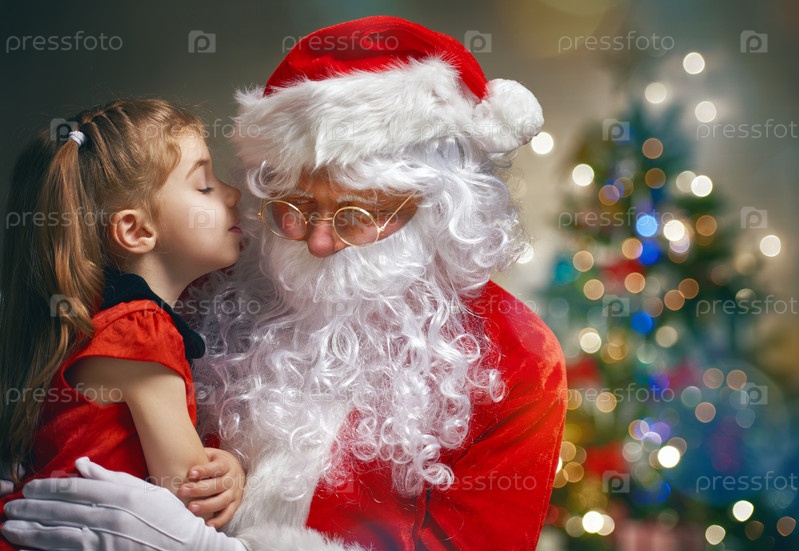 Санта-Клаус и маленькая девочка