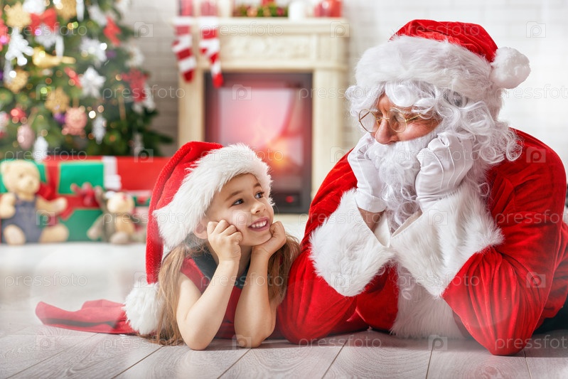 Санта-Клаус и маленькая девочка