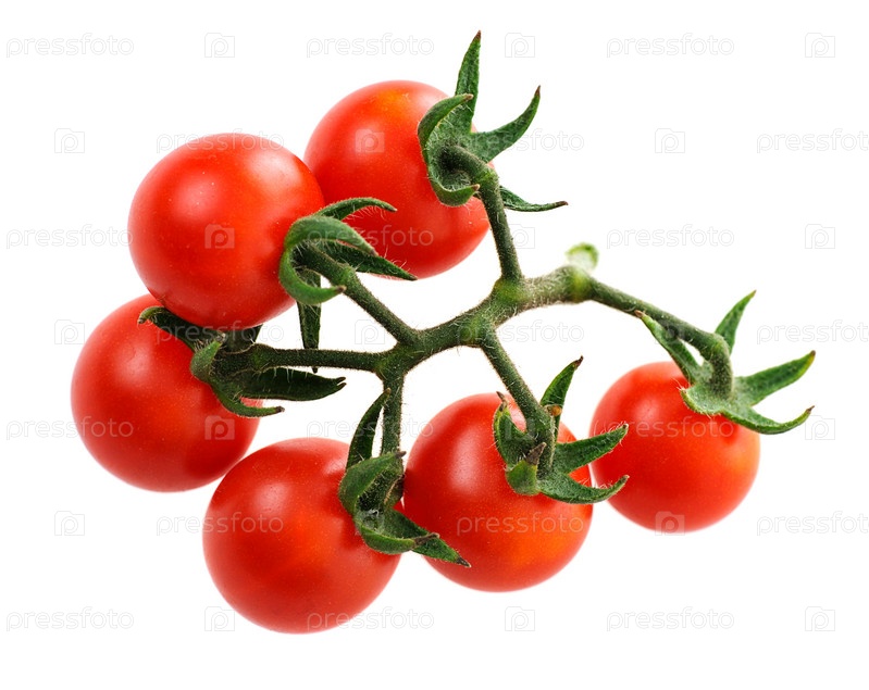 Веточка свежих помидоров Черри на белом фоне