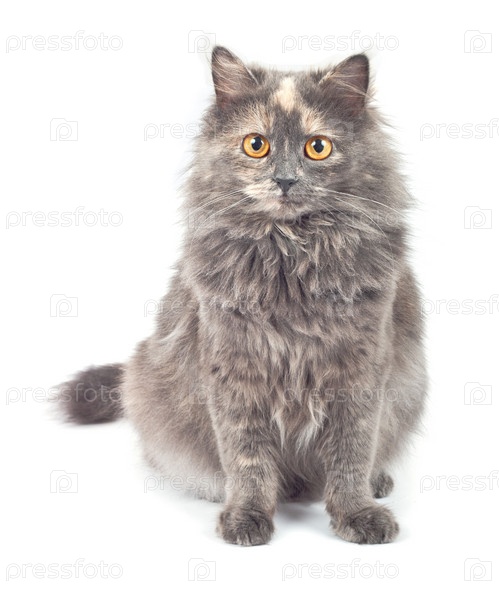 Серый кот на белом фоне