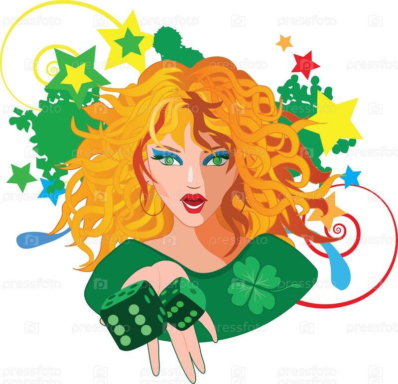 Рыжеволосая девушка бросает игральные кубики