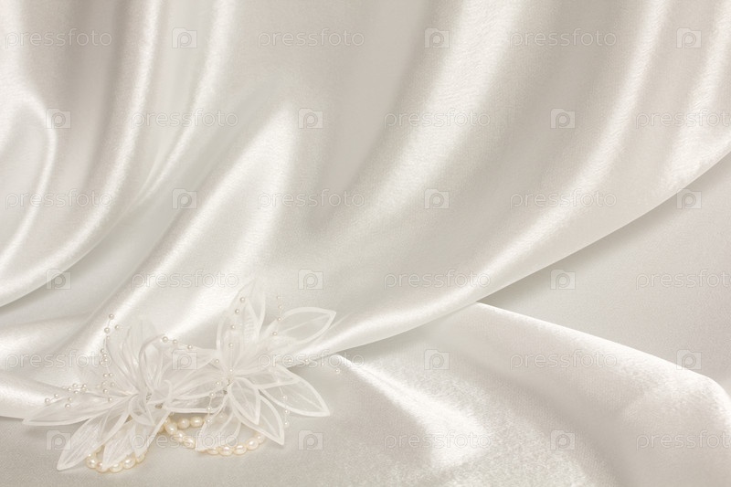 Свадебные аксессуары и жемчуг на белом шелке
