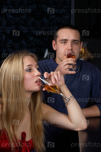 Девушка и парень пьют вино