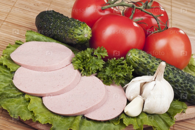 Колбаса с зеленью и овощами